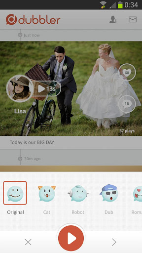 You don't text your personality. You voice it. Dubbler lets you use your voice - the tool of expression that comes most naturally – to let people know what you're thinking, seeing, and feeling in real time.-Send news, jokes, comments, hearable hugs, musical sketches with the full-force of your personality. -Capture moments, emotions, creative flashes – your undeniable, unique charm – in A way that text and typing can't.-Record up to 60 seconds, color your thoughts with our voice filters, and instantly post your dub across all your social networks. -Your fingers never can (or will) catch up.Introducing Dubbler. Be Heard.