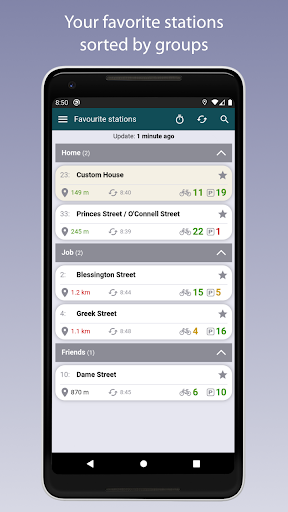 - List of favorite stations categorized by groups (home, work, friends or general).