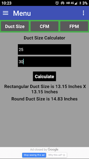This app is developed to Calculate Duct Size Required with available CFM & FPM.