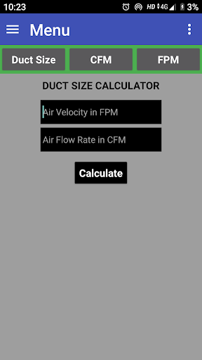 This App is also Calculate Air Flow rate in CFM and this app is also calculate in Air Velocity in FPM.
