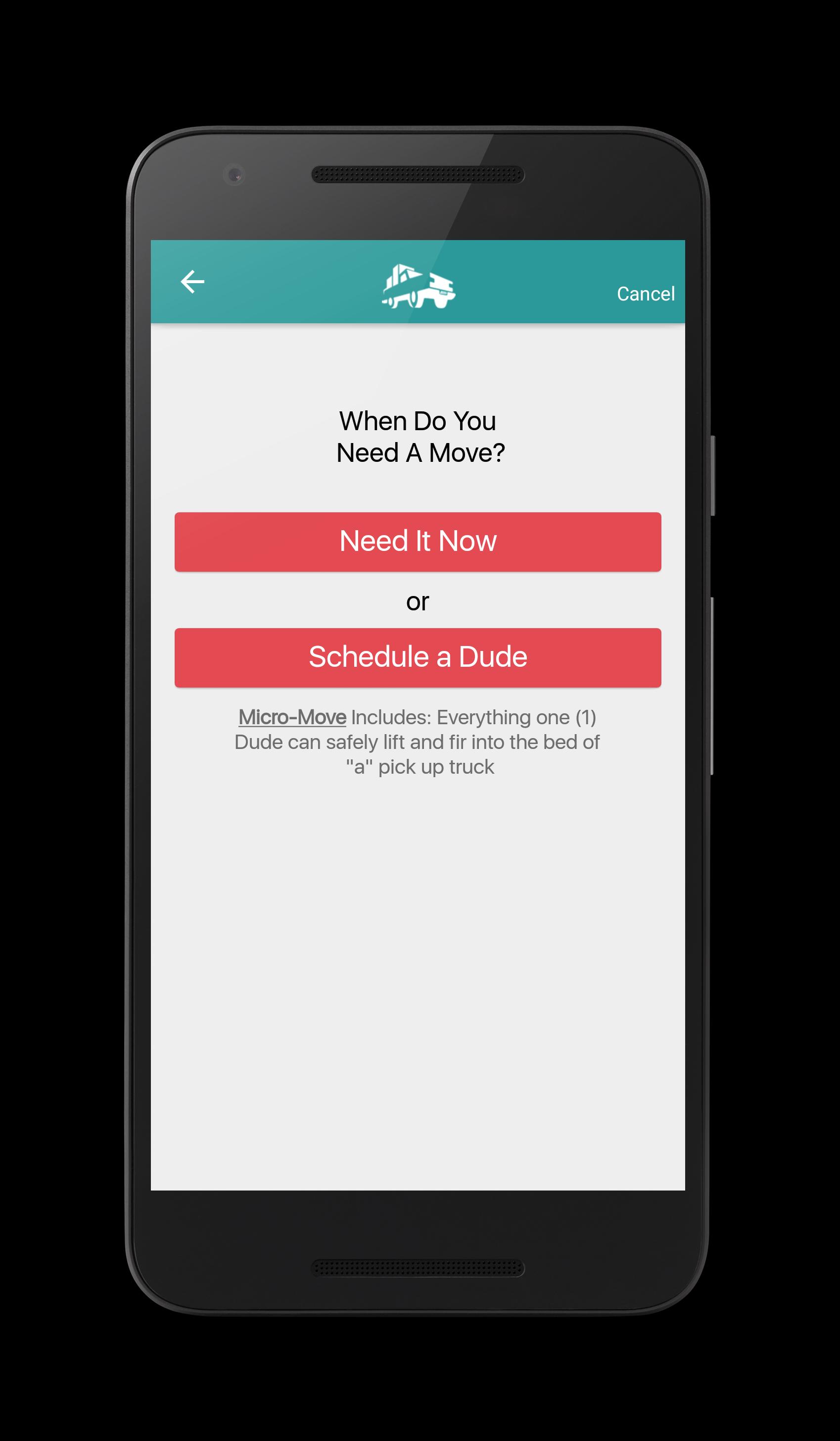 Your DUDE usually arrives at the designated pickup location 15-45 minutes after your request. Your DUDE can meet you at your home, local hardware store, garage sale, or place of business.
