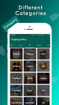 status app provide variety of short videos, DugDug Status app brings you the best status collection of 2018 in English & Hindi ,Gujrati,Tamil. WhatsApp has made it very easy to express your mood by sharing photos/videos on WhatsApp Status. Sharing photos is easy but making a video of your feelings. To solve this, we have developed india market first Video Status App. you can easily downalod and share video on social apps. One of the best app for Video Songs Status (Lyrical Videos), DP and Status Video, Video Lyrics Status and video quotes , Memes , DP Status, Wallpaper.