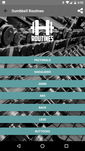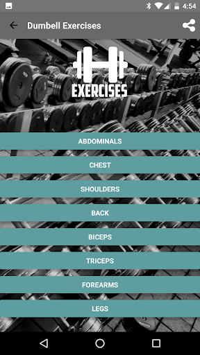 Over 70 dumbbell exercises and dumbbell workouts categorized by main muscle groups and represented by specific muscle names. All the dumbbell exercises and dumbbell workouts are displayed with fully animated images and complete step-by-step instructions so that you can create your own dumbbell exercise and workout routines.