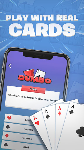 Dumbo is a free party drinking game you can play completely offline. Supports a minimum of two players, but can be played with large groups.