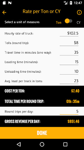 Convert your hourly rate into a tonnage or CY rate that factors in your tolls and travel time, as well as loading and unloading times.
