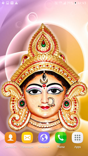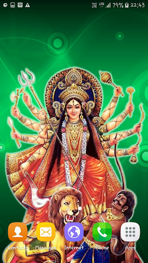 Durga Mata Live Wallpaper consists: HD Images. This app can change the background on given transition time. User can set the transition time.