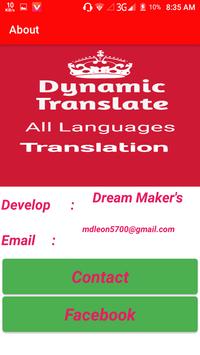 Dynamic Translate is the leading free translator / traductor app. Easily translate text or start voice-to-voice conversations in over 64 languages.This App will be very useful to people studying a foreign language (travelers, students and everyone who raise their level of language)