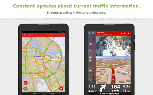 + Intelligent route guidance using accurate traffic information and traffic cameras, in real-time.