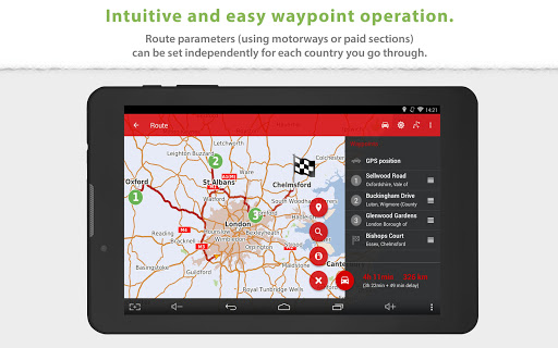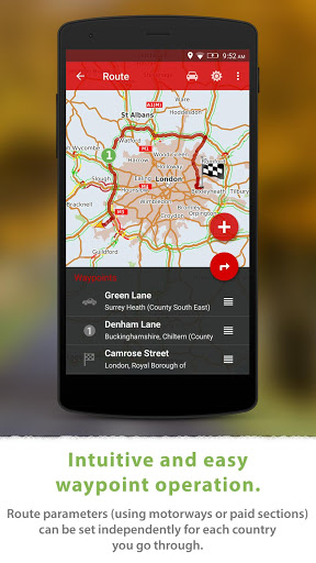 • Advanced route planning using waypoints with the possibility of avoiding toll roads in certain countries or along the entire route