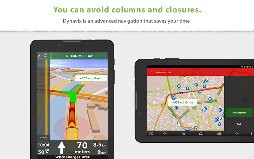 Dynavix uses traffic data received on the basis of anonymous collection of data on the movement of other vehicles. With this feature, you can avoid e.g. impassable stretches in the morning or afternoon rush hour. The function of real-time traffic information covers 87% of the EU population.