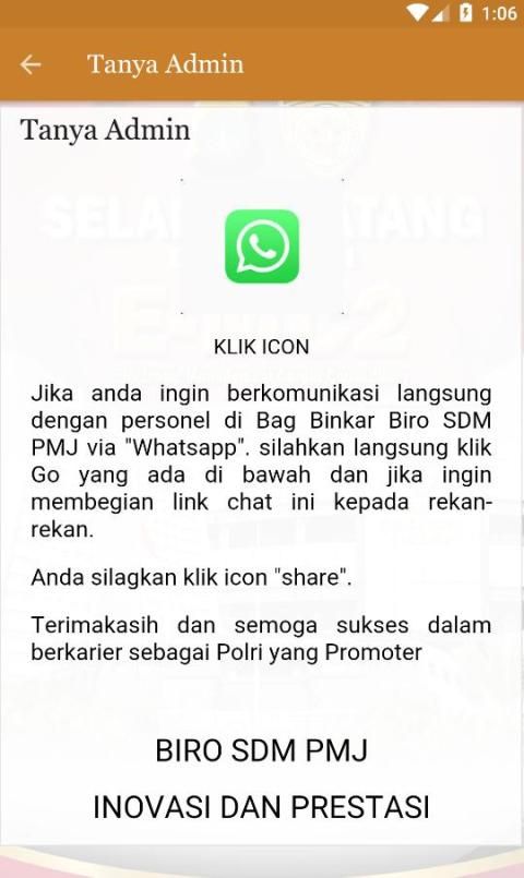 pertanyaan terkait prosedur serta perkembangan usulan mutasi, jabatan dan kenaikan pangkat. Aplikasi ini