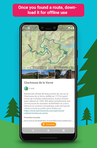 E-walk allows you to find your next outdoor activity, plan it, and record it. E-walk is the perfect companion for outdoors activities (such as hiking, trekking, biking, fishing, hunting, etc...) and for traveling abroad, because you can fully use it offline.