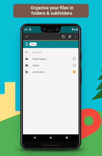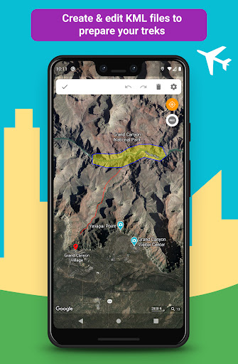 • plan your hikes by creating and editing KML files on the map. A KML file can contains markers, lines & polygons
