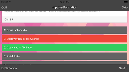 There is specific interpretation for each question in ECG / EKG quiz. The explanation given is simple, precise, and relevant to the case to make it easier to memorize. However, the explanation feature is only available in pro version.