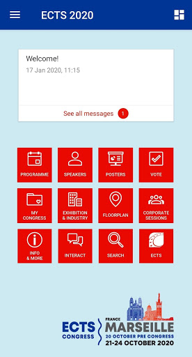 Available now, the ECTS 2018 Congress App is directly accessible from this mobile App to provide you with everything you need for your preparation and attendance at ECTS Congress: browse the scientific programme, presentations, posters, abstracts, exhibitors & maps. You will be able to create your personalised Itinerary Planner, schedule meetings, and connect with other attendees.