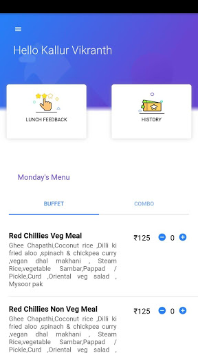 • EFI IDC app is a way for employees in Bangalore to look at the lunch offering for a given day and week. • It allows the employees to buy lunch. • The app also allows users to provide feedback about the lunch.
