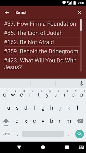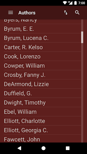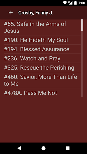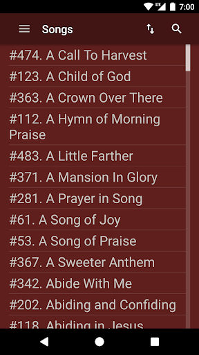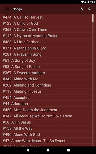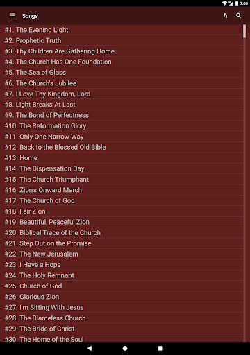 ELS Hymnbook is an app for viewing and searching the Evening Light Hymnal, a Church of God hymnbook. Browse songs in numerical and alphabetical order, as well as by topic, author, or composer. View songs in sheet music or lyrics only mode. Searching is enabled for titles, lyrics, topics, authors, and composers.