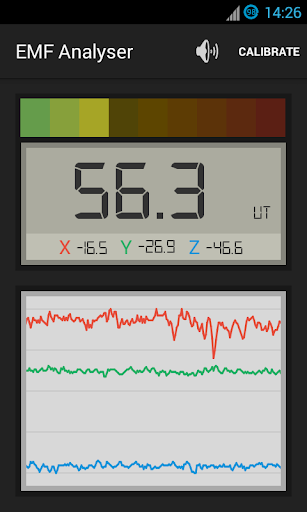The EMF Analyser is professionally designed to allow you to measure the presence and strength of EMF emissions by using your device's built in tri-axis magnetic sensor (measured in microtesla). It then combines the data, like popular hardware tools, to provide an easy to interpret reading on the screen.