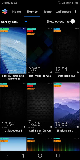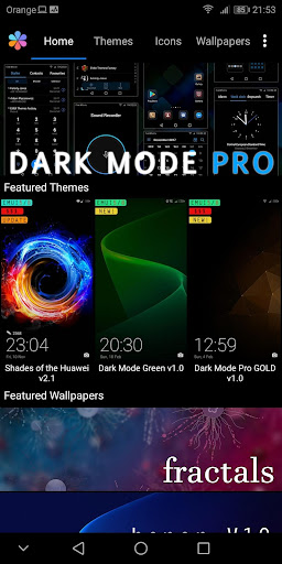 EMUI Themes Factory presents its own themes, wallpapers and icons browser, designed for Huawei EMUI 5/5.1/8 phones.