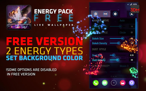 Energy Pack Free is 3D particle animation system that can be personalized to suit your own unique style for use as Live Wallpaper on Android Smartphones and Tablets.