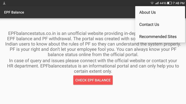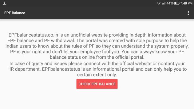 "EPF balance" is an innovative app that lets you know your PF balance online without any hassle. EPF balance is designed to work with on your Android device and fetches the information from the official website for you. It is important for the employees to know their PF account balance so they can track what their employer is doing. We have made registering the account and getting UAN number simpler for you