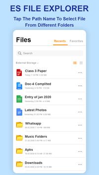 helps you handle all your files whether they are stored in your device's memory, microSD card, local area network, and cloud storage accounts.By default, ES File Explorer (File Manager) allows you to copy, move, rename, delete or share files to and from any of your storages. It also lets you browse and access your files by category.