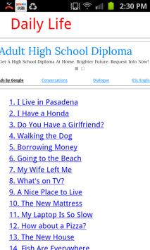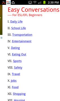 ESL Fast Speak is a free app for people who want to improve their English speaking skills. In this app, there are hundreds of interesting, easy conversations of different topics for you to choose from. All the dialogues were read by native speakers of American English, and recorded by professionals, The dialogues are interesting, and the quality of the audio is high.
