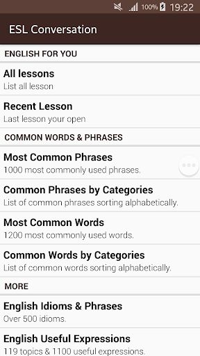 - 100 Most Common Phrases: All phrases which use in an application is very common in a real life, you can practice, speaking and check result online. We will give you points.
