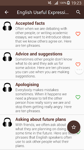 Moreover, you can boost your English vocabulary by learning new words in various topics such as airport, bank, colors, shops etc. These phrases or expressions can be used not only in your daily conversation but also in academic writing. All phrases and expressions in this app are based on Britain English.