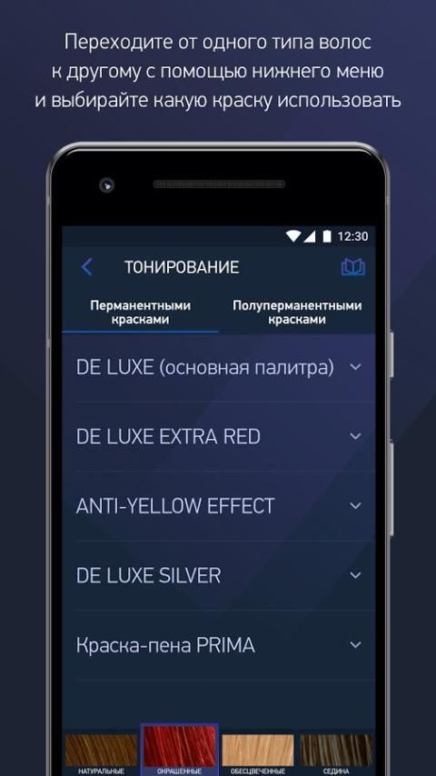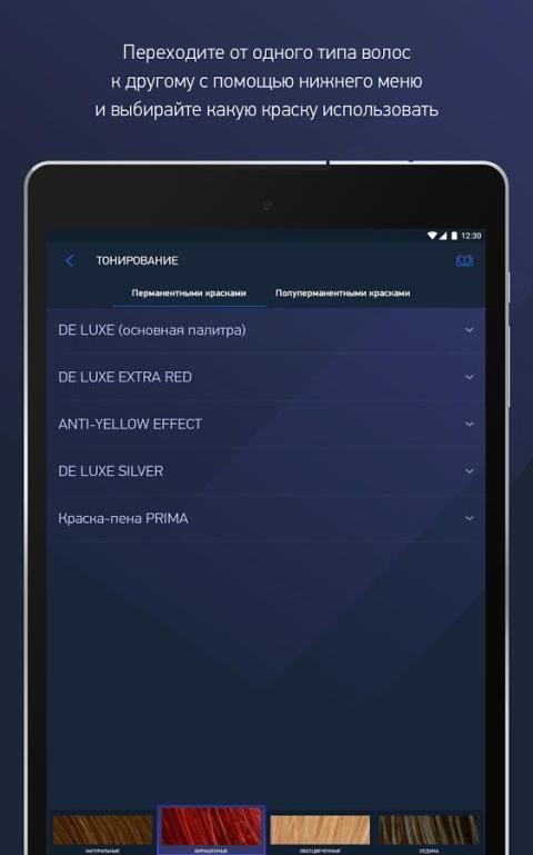 * So you can always return quickly to any type of hair through the lower menu and look exactly the formula that you are interested in. This is especially useful when your client's hair a different type, for example, natural and painted on the roots in length.