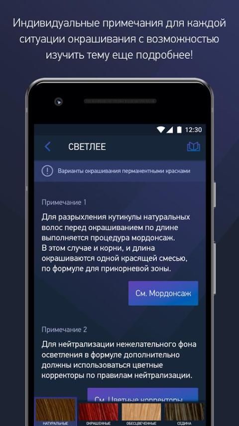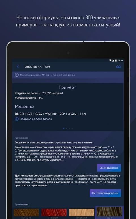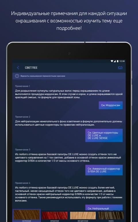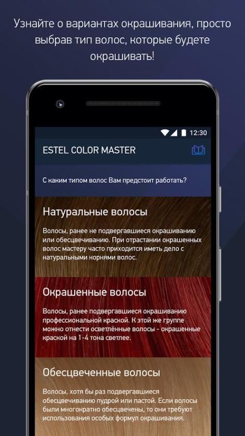 Convenient construction information in the application on the colors of hairdressing ESTEL Color Master will allow you to easily find out how to get the desired hair color with the help of some paint on what details you should pay attention to whether to add color correctors and how much, to see different examples of need.