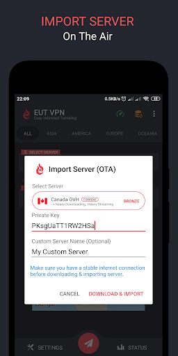 EUT VPN also features an apps filter, real-time server status, custom payloads, and a built-in speed test to ensure the best possible user experience.