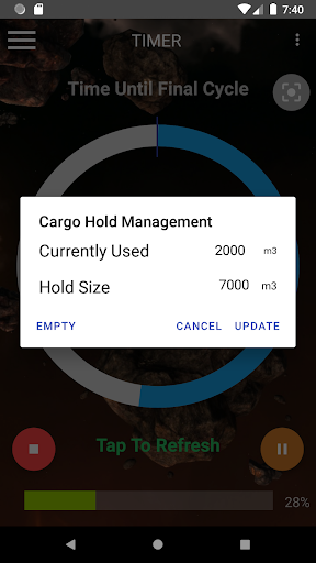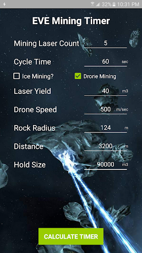 Are you an amazing mining multi-tasker? I really wanted to be, but I kept finding my Cargo Hold full and the mining lasers off, so I created this app. It takes all of the guess work out of timing when to look at the screen and empty your ore (or ice).