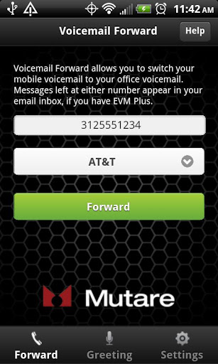 EVM Mobile is the app for business power users that live on the phone and in email but hate wasting time checking for voicemail.Two great features:Voicemail Forward Forwards mobile voicemail to your business voicemail box. When used with Mutare39;s EVM Plus giSTT unified messaging application, EVM Mobile consolidates all your voice messages in email so you never have to check in two places again. Messages that are left at either number all appear in your email inbox.Greeting Changer When used with Mutare39;s EVM Plus giSTT unified messaging application, you can record your Avaya Modular Messaging or Aura Messaging voicemail greeting right from your Android phone. Easy as tap, record, tap, upload Voila Never login to voicemail again