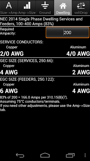 It appears that this app does not correctly derate ampacity for temparature. Appears to be some problems between Tables B310.16 and B310.17 in terms of selection of base ampacity and it appears that temperature derate is based on the 60 degree conductor rating rather than the 90 degree rating. Good app otherwise I give it 3 stars with the hope that they will update to 2017 NEC for android and correct the errors in derate.