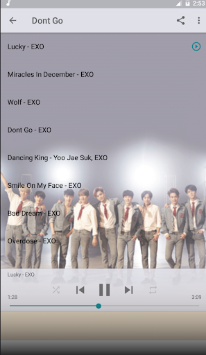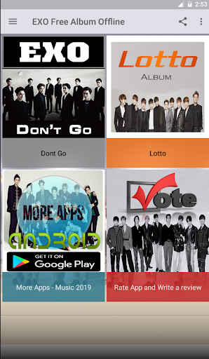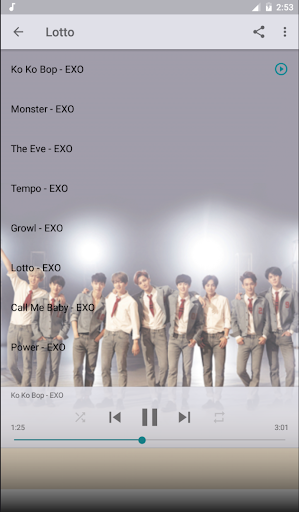 EXO Free Album Offline is a completely FREE online music application. The purpose of this EXO Free Album Offline application is to provide users with the best features and the easiest to use. Our application aggregates the most popular songs online, ... so you can search for the songs you like to listen to.
