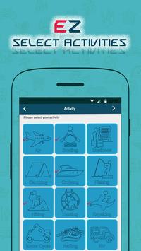 3. This will take you to the next screen, in which you will be asked “who is traveling”. Select the right icon to indicate to the app about who is traveling. Now tap on the forward arrow, where you will be asked to select your activity while on the trip. Here, you will be asked to select the various essential required for the trip. Select your items from the packing list presented and tap the ‘save’ icon to save it.