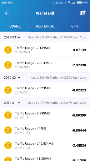 Support for purchasing data traffic using Bitcoin.
