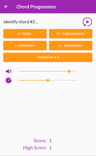 • See if you can identify the chords in a randomly generated chord progression. Select which chords you wish to include.