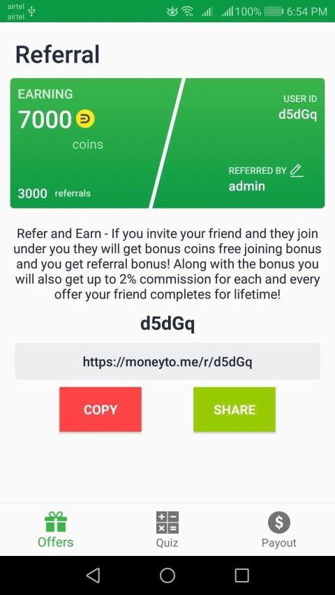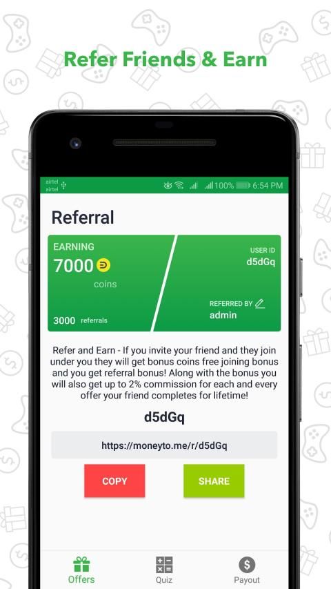 ☆ You can refer and earn money on this game reward app, a cool 2% every-time your referral completes an offer.
