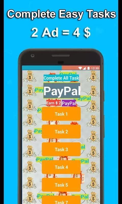 The First App that gives you Free PayPal Cash , Recharges for everytime just you click on showing Ad's .... It Has 14 Tasks Containing 4 to 5 Advertisment in Each Task , You Need to just click on all Ad's and wait 10 seconds , You dont need to install Adverstiment Apps , You just need to wait 10 -15 Sec. ,then return back and do same thing again and again .