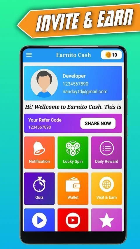 Earn Free Unlimited Cash/Money By complete Simple Daily Task and Play Quiz Game In our Earnito Cash app