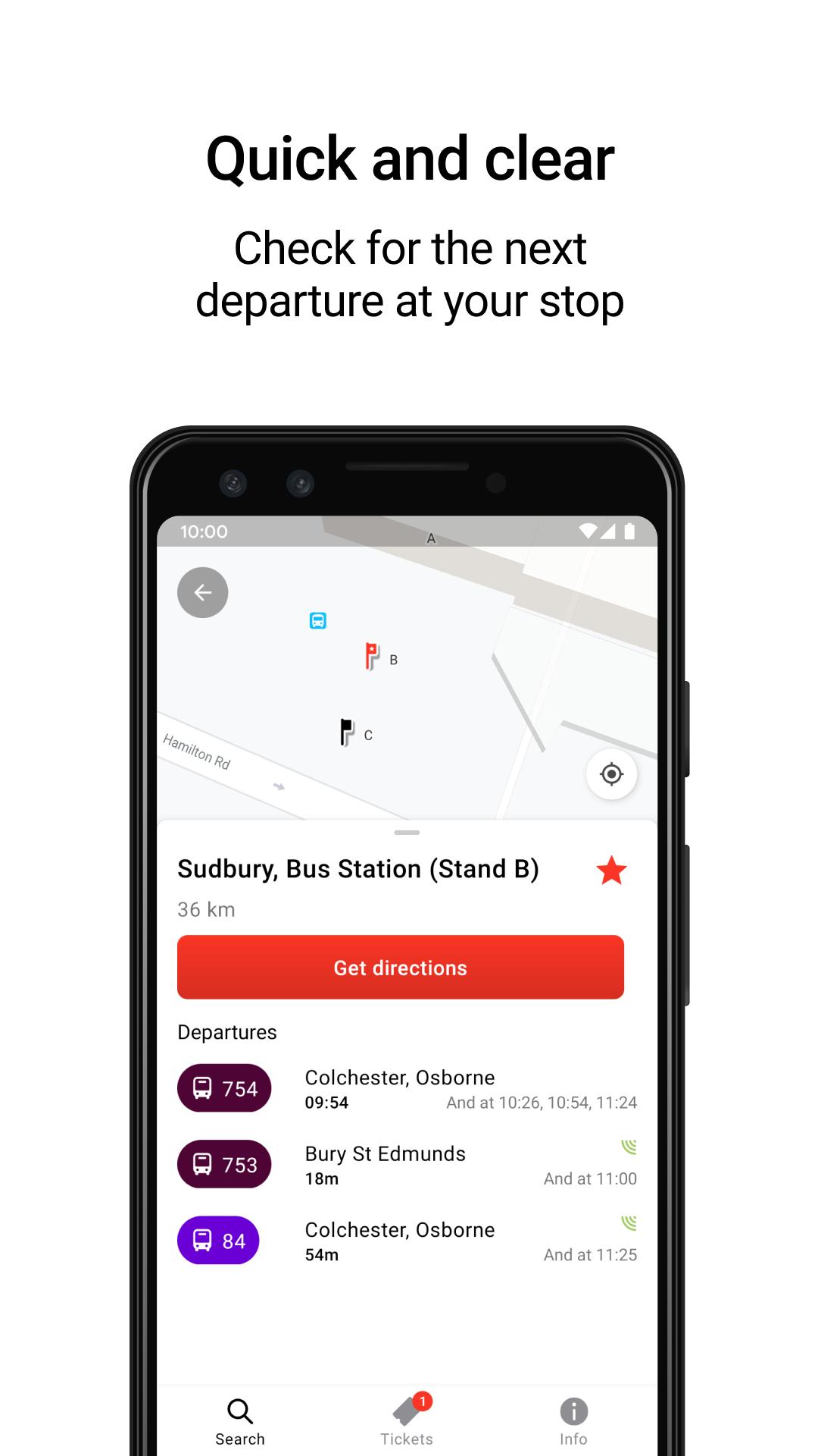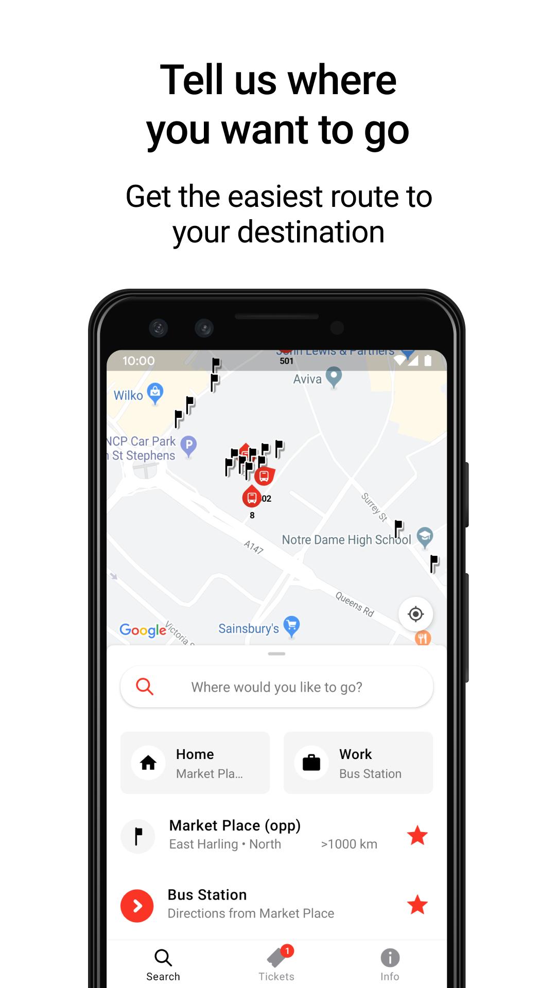 Use the East Anglia Buses app to plan your next journey and buy cheap bus tickets. Designed to make bus travel easier, it will work out how to get to your destination, show you where the nearest bus stop is and the departure time of the next bus. You can buy and store your bus tickets in the app or use them straight away.