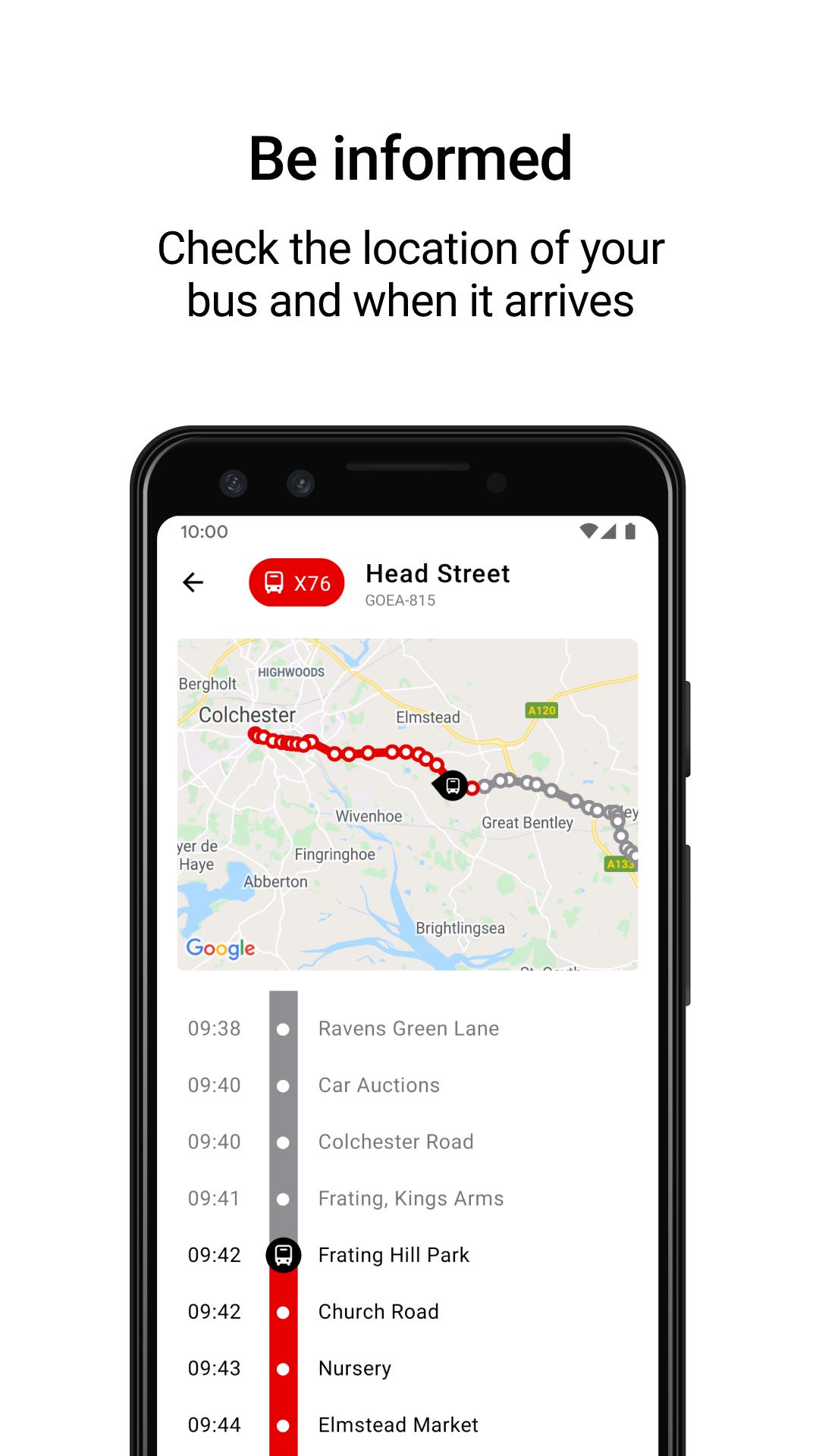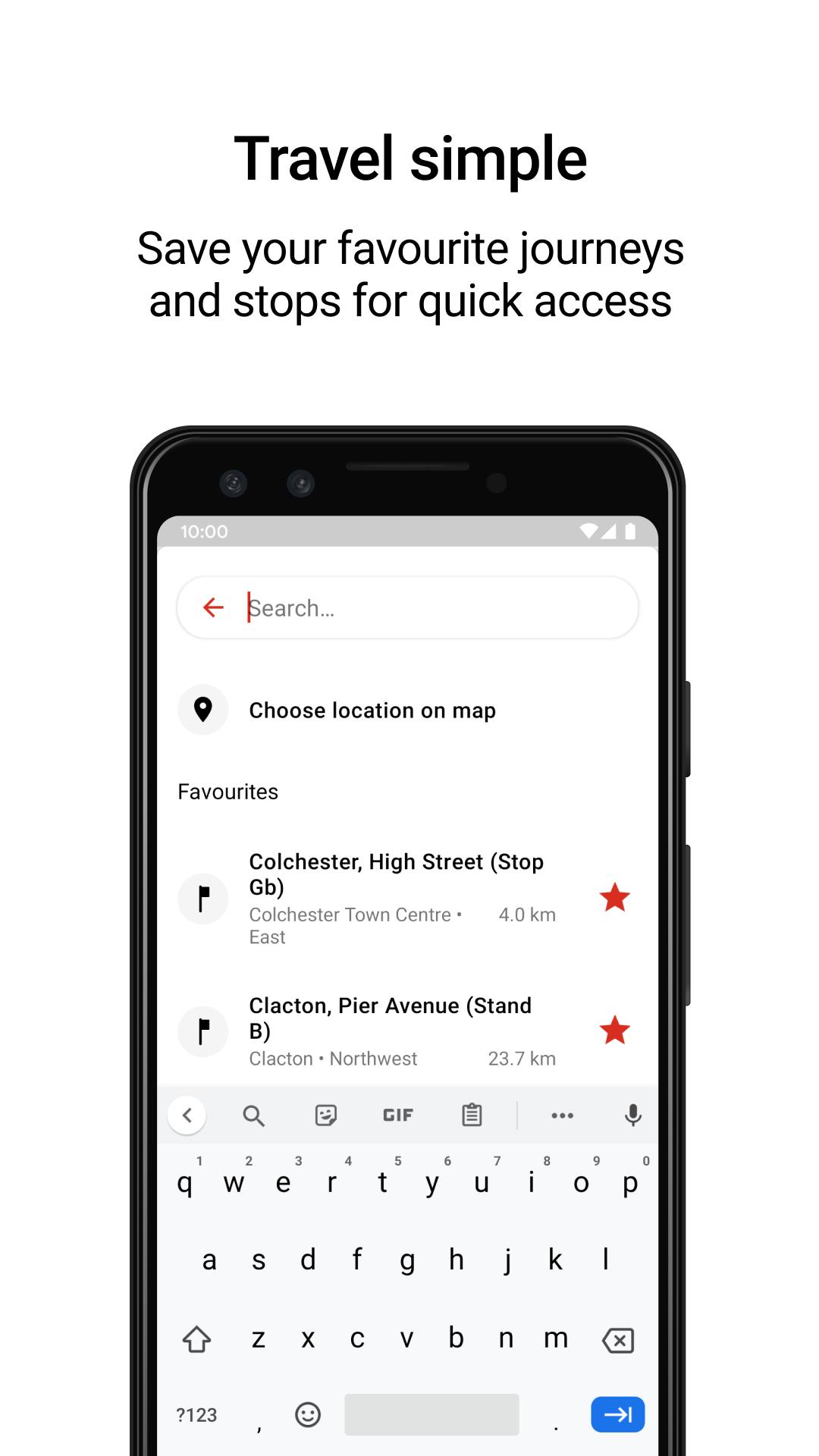 - Smart journey planning – Add your start and end points, it will work from postcodes, bus stop names or place names and return the best route. Or it can detect where you are and plan from there, providing you with live arrival times.