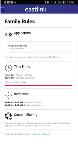 This app uses Accessibility services. Eastlink is using the respective permissions with active consent by the end-user. The Accessibility permissions are used for Family Rules feature, in particular: