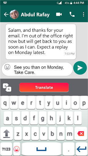 Text translator is a keyboard with translate option to translate text into any language you want. This keyboard translator app will help user to write an any language. Translator button in this language will help you to translate writing into a selected language. A single click on the button will translate your text.