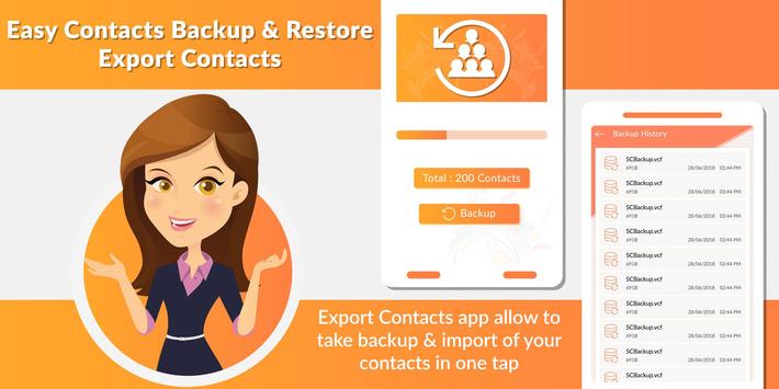 - Easy Contacts Backup & Restore - Export Contacts app backup your contacts in your phone only we don’t use or store in server.