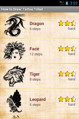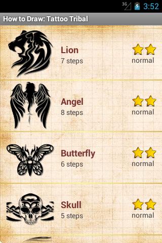 Try our tribal art tattoos designs application!Try yourself or make it for your friend.Each tattoo idea drawing is divided in 5 to 15 steps, and its easy to follow.Skull tattoos can have a lot of different meaning.If in ancient times, tribal tattoos have been associated closely to social status, achievements, identification, etc, for now, tribal tattoos have been widely spread into many styles and only adapt the style of the origin tribes, then combine it to the modern images. That's why the tribal arts no are more like fashion with art, not that mythical nor mysterious. Although somehow the design can bring kind of ancient or mythical sense, but the community no longer judge someone by identifying the tattoos.★★★ 21 Tattoos Designs ★★★In our application you will find lessons that will teach you how to make:✓ Tattoo✓ star ✓ Eye✓ Cross✓ Face✓ Dinosaur✓ Yin Yang✓ Hawk✓ Guitar✓ Lion✓ angel ✓ Butterfly✓ Skull✓ Dragon✓ Face✓ Cat✓ Leopard✓ Horse✓ Snake✓ Eagle✓ BatDraw our best star tatoos on any part of you body: tatoo on arm, tatoo on shoulder, tatoo on leg or tatoo on your chest!You will find a lot of great tatoo ideas in our "How to Draw Tatoos" apps:★ women tatoo★ men tatoo★ kids tatoo★ cool tatoos★ tribal tatoos
