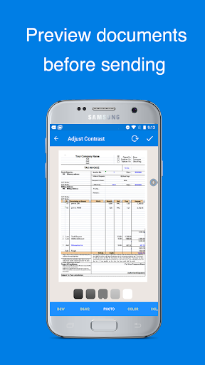 - Fax images from gallery or using phone's camera to scan.