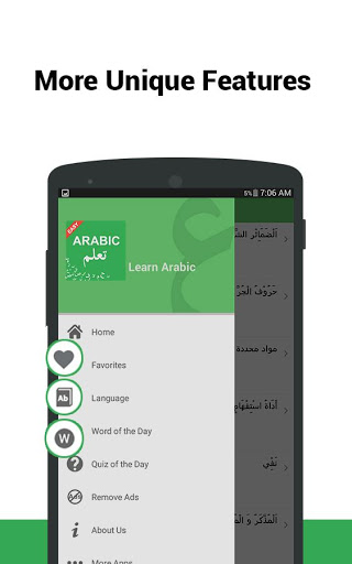 The basic fundamentals of Arabic language can easily be learn by using this app. Tap on the word and listen how to pronounce the correct Arabic word and help you start a conversation and understand what they are saying. As every language we start with the basic and this app provide Alphabets in Arabic, Numbers in Arabic as well as Vocabulary. Easy Learn Arabic app also contain dictionary and is a complete package for non-Arabic people to start speaking Arabic just in few months.